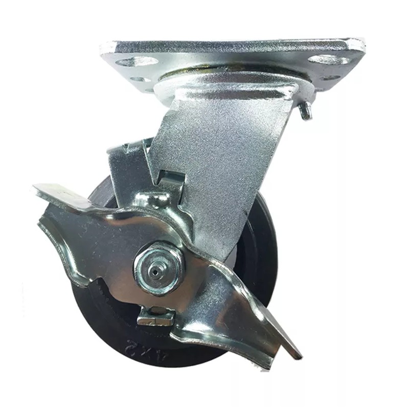 HEAVY DUTY 4" x 2" Rubber on Cast Iron - 1 Swivel with Brake