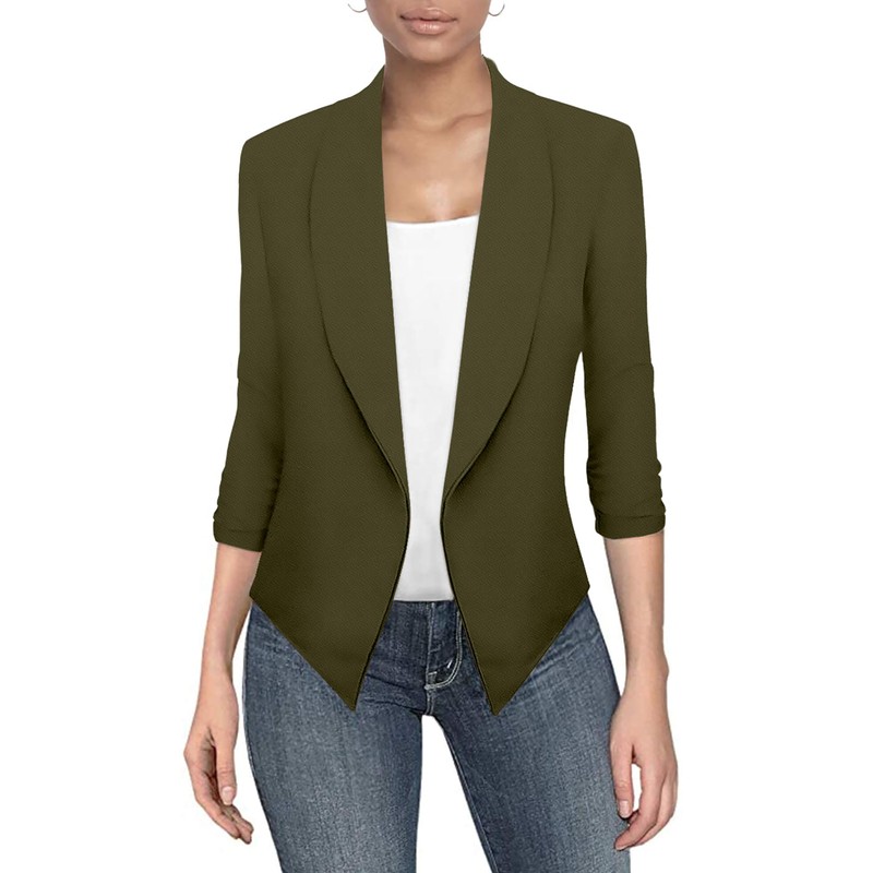 Hybrid & Company Womens Casual Work Office Open Front Blazer Jacket with Removable Shoulder Pads JK1133 Olive Medium