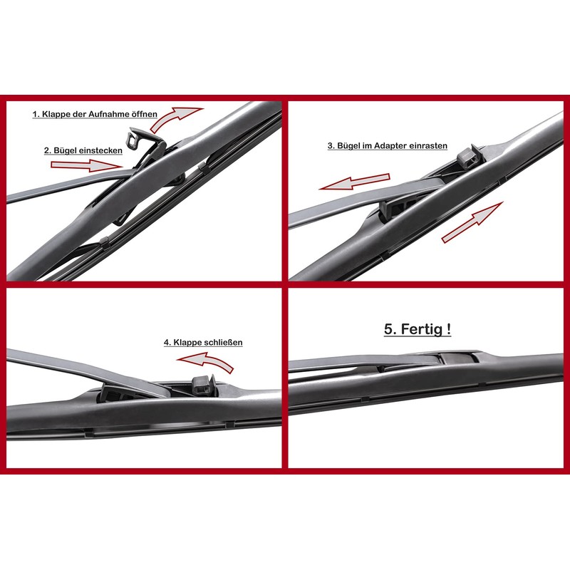 Easy wiper replacement thanks to pre-assembled, vehicle-specific adapter.