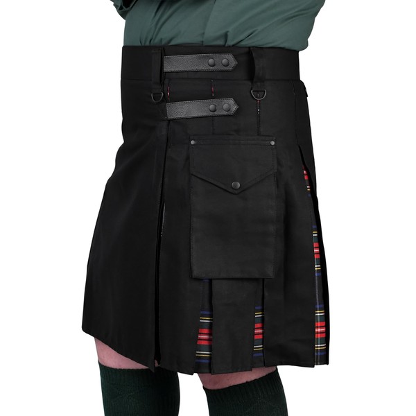 Hybrid Utility Kilts for Men Scottish Traditional Kilt with Flashes (US, Numeric, 34, 36, Regular, Regular, Black Stewart)