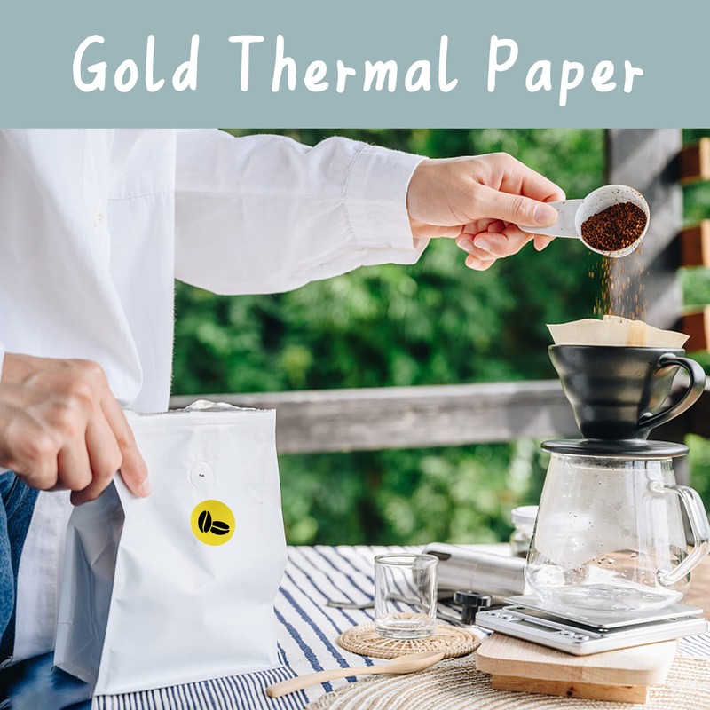 - √ WIDE RANGE OF APPLICATIONS - Our gold thermal labels are suitable for various purposes, including labeling merchandise, organizing files, creating barcodes, shipping packages, and much more. They are versatile and can be used in retail, e-commerce, office, or personal settings.