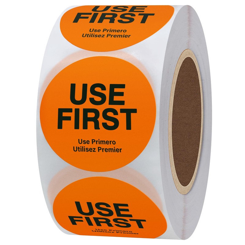 - Orange "USE FIRST"Label is printed in English, French and Spanish