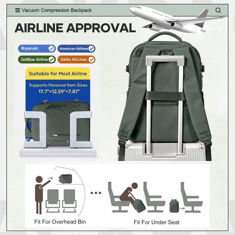 - HYC00 Vacuum Travel Backpack with Pump, Vacuum SealCompression Backpack, Large Travel Bag For Women Men, Durable Outdoor Hiking Sports Rucksack, AirlineApproved Carry On Backpack, Travel Essentials Traveling Bag