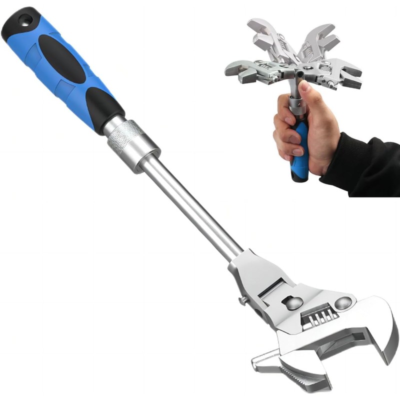 A convenient monkey wrench with a variety of functions, including length, head angle, and ratchet function.