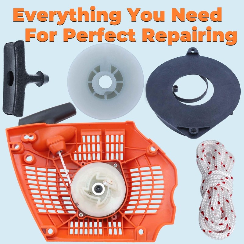 1 x Recoil Starter Assembly, 1 x Recoil Starter Spring, 1 x Recoil Starter Pulley, 1 x Recoil Starter Hand Grip, 1 x Recoil Starter Rope.