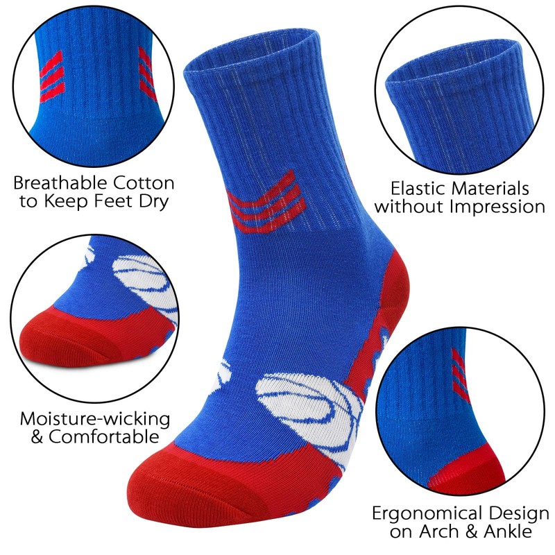 • Performance-Enhancing Design: Our kids basketball socks are designed with features that enhance your child's performance on the court. The socks provide arch support and have a reinforced heel and toe for durability, helping your child stay comfortable and focused during the game
