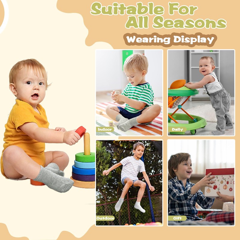 - Non Slip Toddler Socks: With non-slip grip on baby sock heels and balls of the feet, to support toddler more easy to scoot, crawl, walk or run on floors. Increase toddler's confidence and interest on toddle