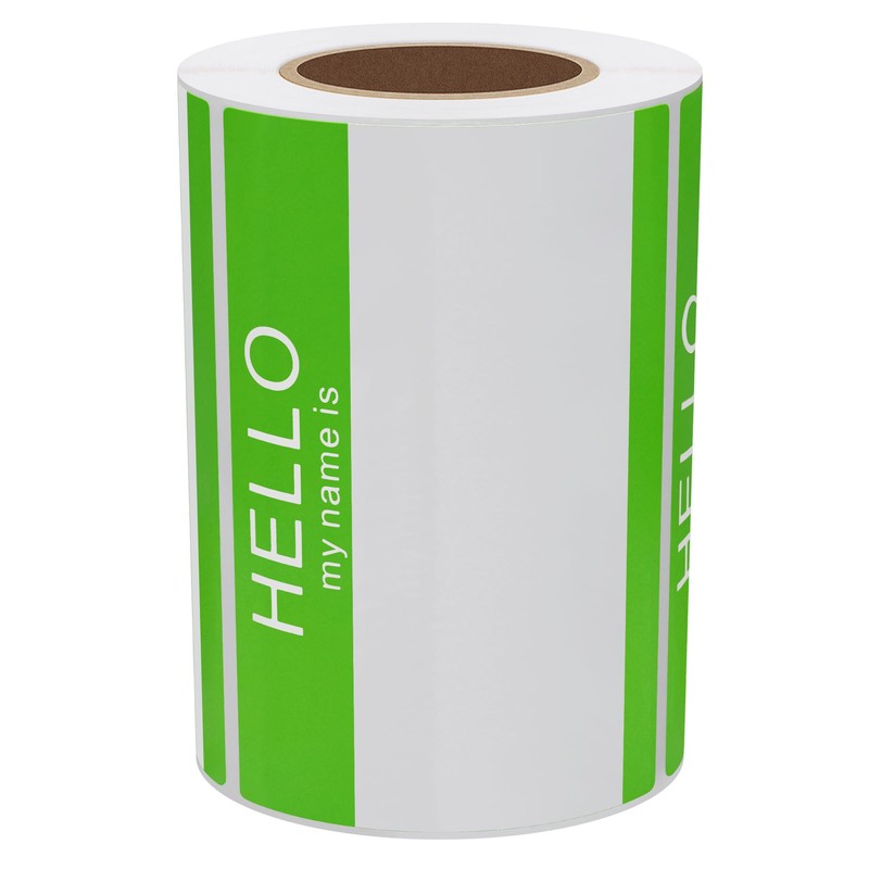 Hycodest Hello My Name is, Sticker Writing Stickers Easy Peel and Stick Badges Sensitive Name Tag 3.5"x2.35", 200 Pcs (Green)