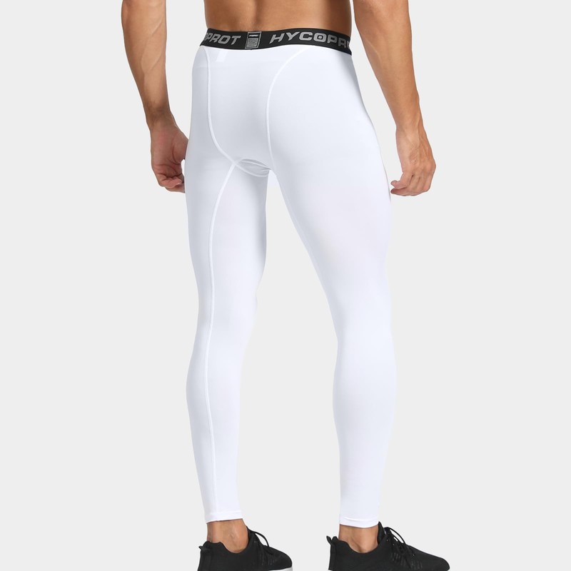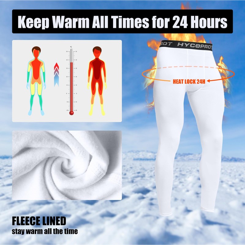 HYCOPROT Men's Thermal Compression Pants, Fleece Lined Athletic Tight Cold Weather Sports Leggings Winter Base Layer Bottoms White