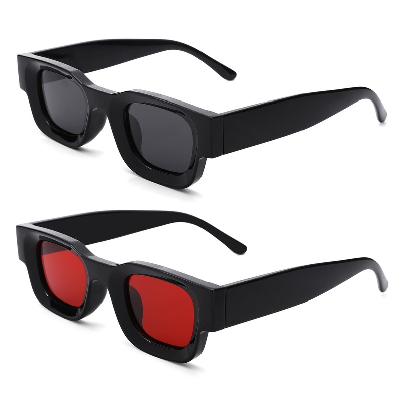 Hycredi Thick Rectangle Sunglasses for Women Men Chunky Square Polarized Sun Glasses Retro 90s Shades UV400 Protection -Black +Red