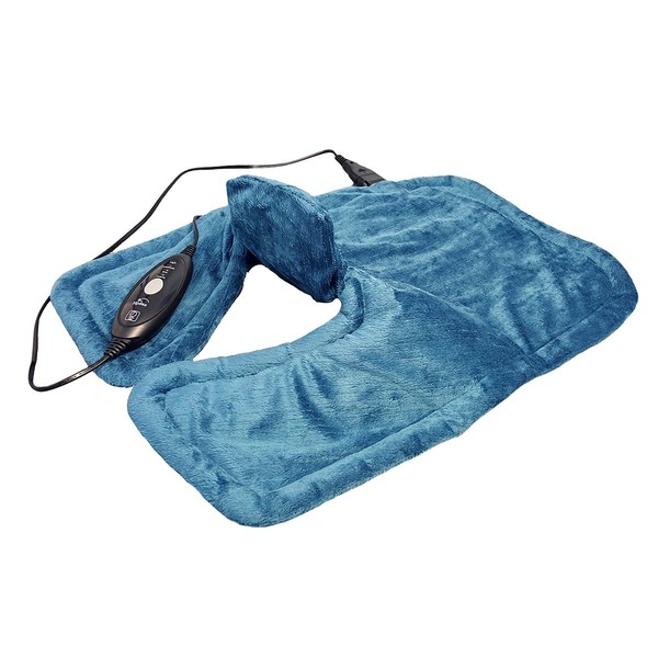 - Neck/shoulder heating pad with extra long heat surface that covers the upper back, shoulders and neck