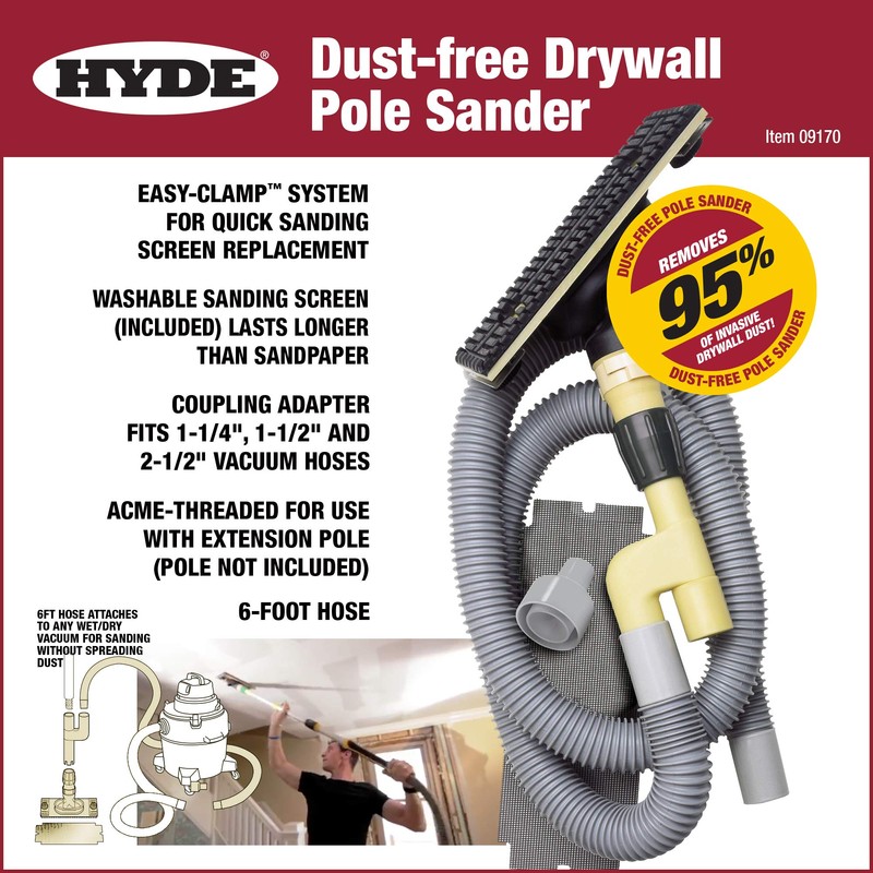 - Handy drywall pole sander attaches to any wet/dry vacuum for sanding without creating dust throughout your worksite