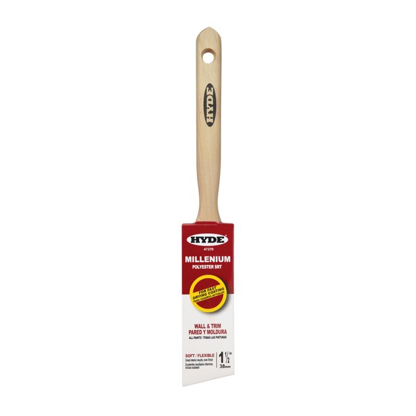Hyde Millenium Angled Sash Paint Brush, Flat, Soft Polyester SRT with Wood Handle, 1 1/2 Inch, 47370