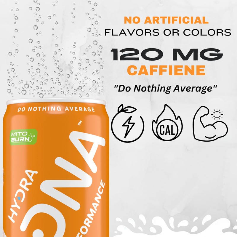 - HYDRA DNA NATURAL FUEL: Packed with 120 mg of organic caffeine, our Watermelon and Orange flavor Performance Drink delivers a clean, sustained boost to keep you alert throughout the day without the jitters!