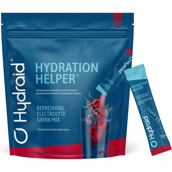 Hydraid Hydration Helper® Electrolyte Powder – Cherry Flavour • 25 Sticks • 1118mg Electrolytes • Low Sugar ORS Formula • Fast Hydration for Sports, Recovery & Energy