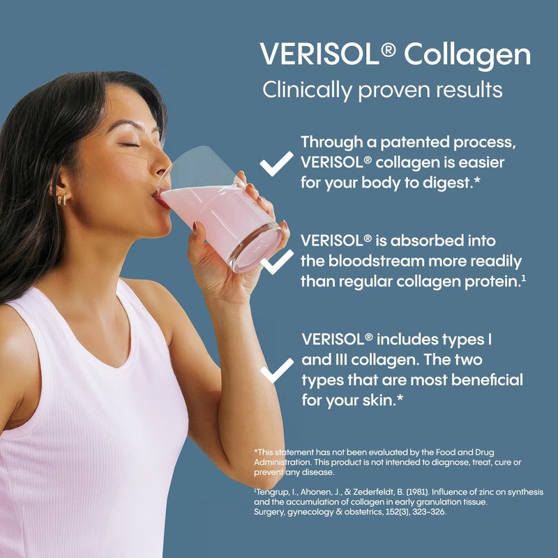 - VERISOL COLLAGEN PEPTIDES: Easier for the body to digest VERISOL collagen peptides absorb more readily into the bloodstream than other collagen protein. Simply put, we use high grade collagen in our hydration formula for maximum benefits.