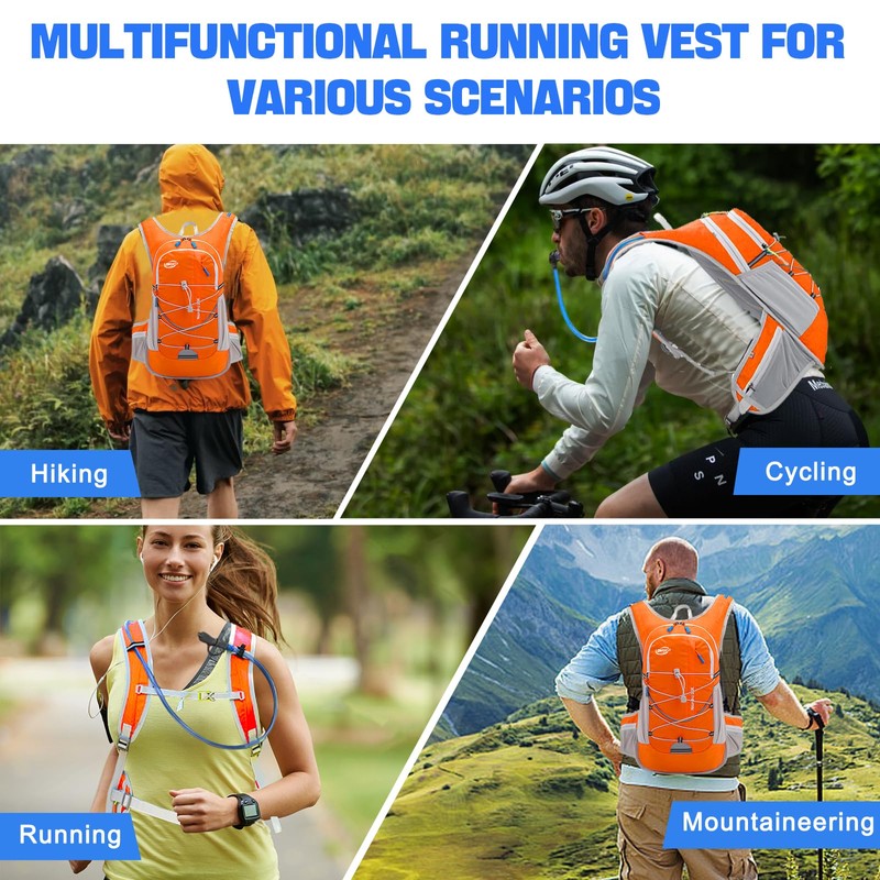 Hydration Backpack 20L Lightweight Breathable Water Backpack with 2L Water Bladder, Adjustable Chest Straps Running Hydration Vest for Cycling, Hiking, Climbing (Orange, 20L)