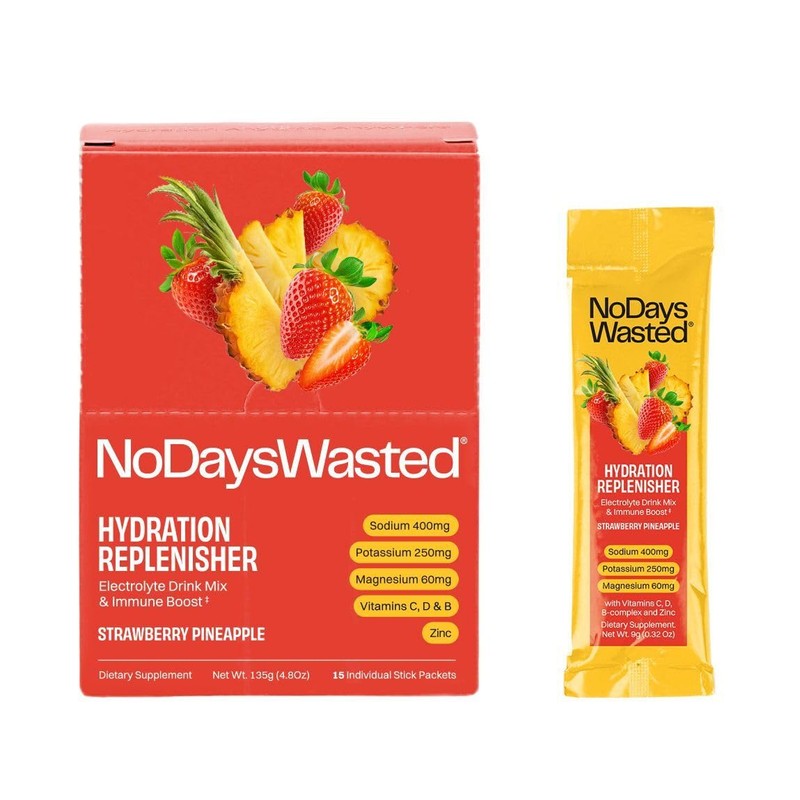 Hydration Replenisher Electrolyte Replacement Stick Packets | Essential Electrolytes & Vitamins | Rapid Hydration | Sodium, Potassium, Magnesium, Vitamins B, C, D, Zinc | Strawberry Pineapple