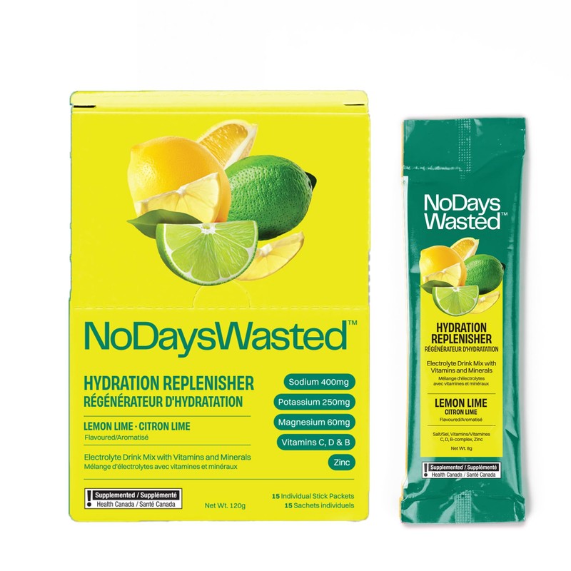 Hydration Replenisher Electrolyte Replacement Stick Packets | Essential Rapid Hydration & Vitamins | Sodium, Potassium, Magnesium, Vitamins B, C, D, Zinc | Made in Canada | Lemon Lime