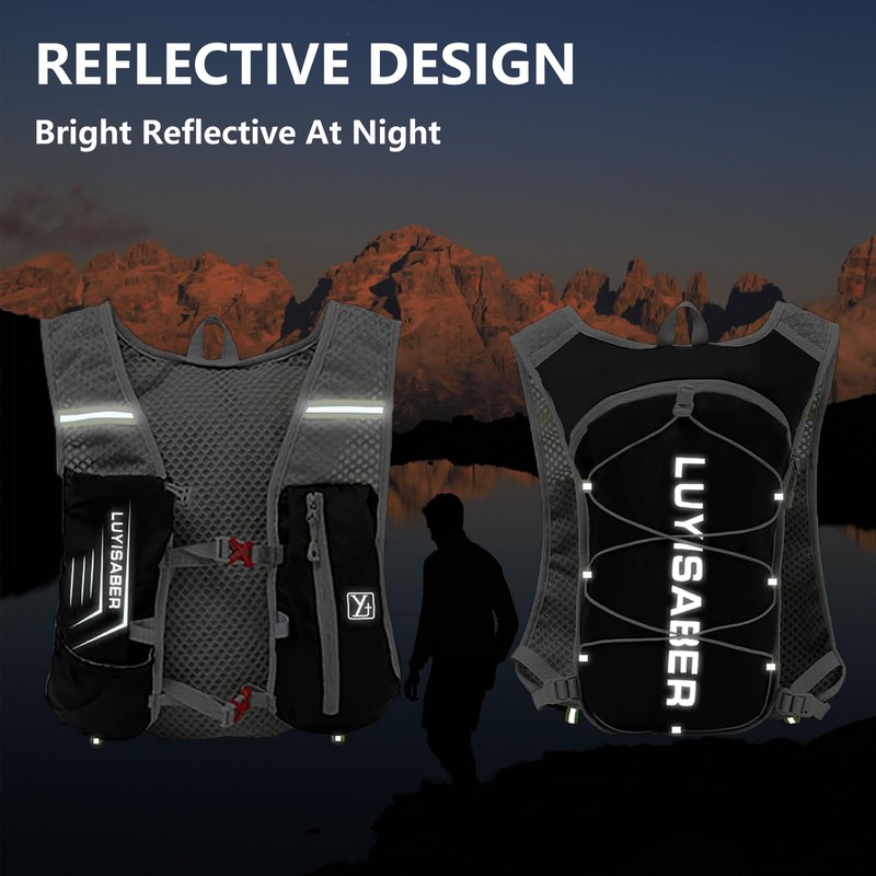 - 【Safety Reflective Strips】The front and back of the hydration backpack bicycle bag are equipped with reflective strips, which increase safety in low visibility situations, making every run farther, safer, and more comfortable.