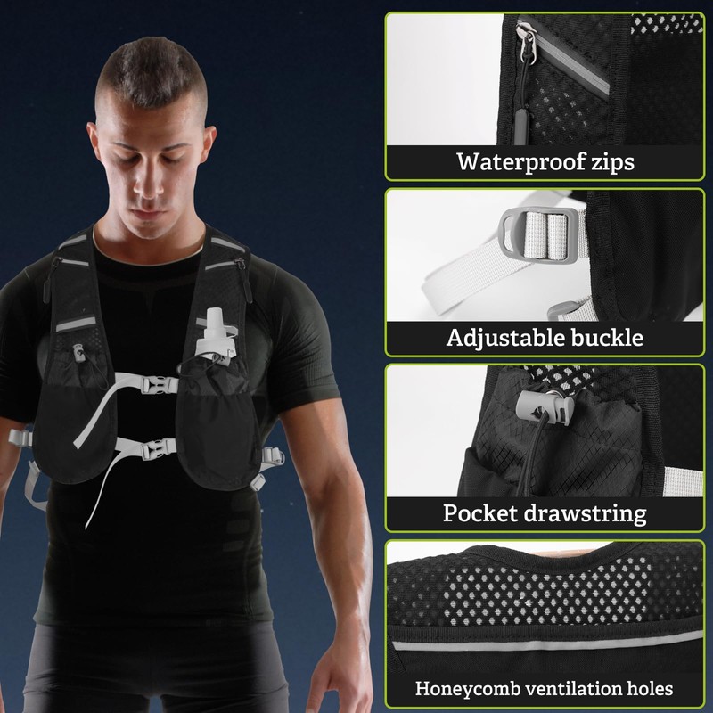 - ✅【Ultra-Light & Breathable Comfort】Crafted from lightweight, moisture-wicking neoprene with ventilated honeycomb mesh, this running vest weighs only 234g (8.25 oz). The breathable design helps regulate your body temperature, keeping you dry and comfortable even on long-distance outings.