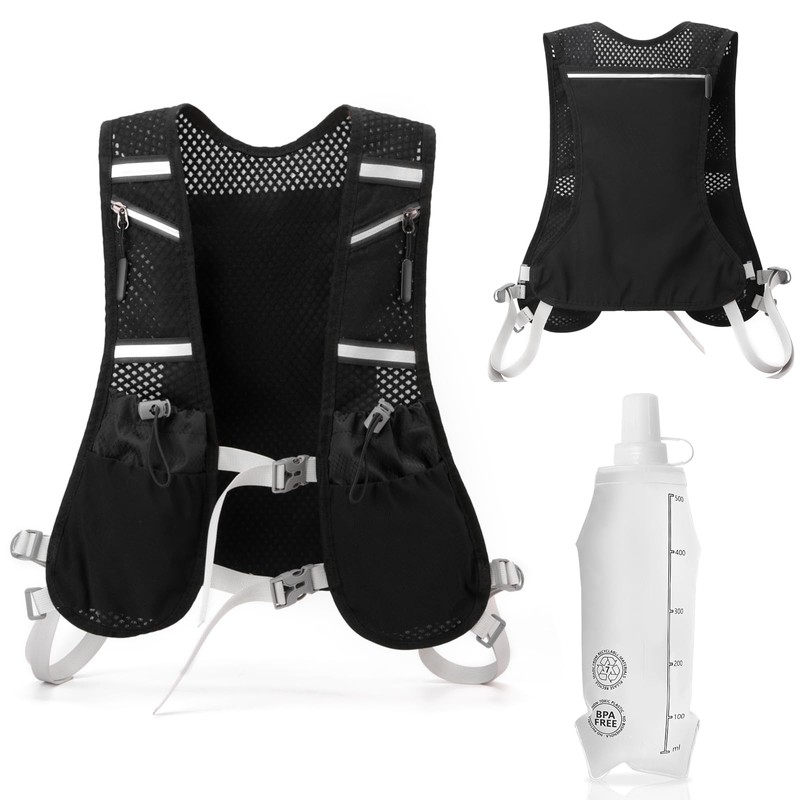 - ✅【Hydration Without Disruption】Includes a 500ml soft water flask designed to shrink as you drink, reducing bounce and sloshing. The top drawstring closure keeps the bottle stable and secure during movement—ideal for hands-free hydration without needing a bite valve or breaking your stride.