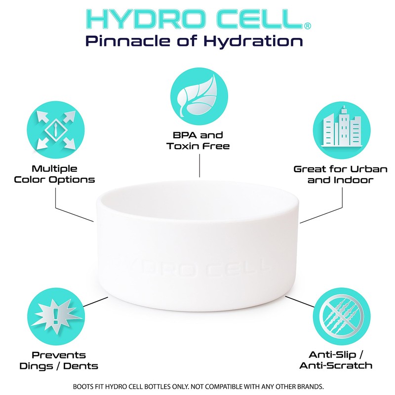 HYDRO CELL Protective Silicone Bottom Boot for 40oz, 32oz, 24oz, 18oz Stainless Steel Insulated Water Bottles, Anti-Slip Sleeve Cover (White 24/14oz)