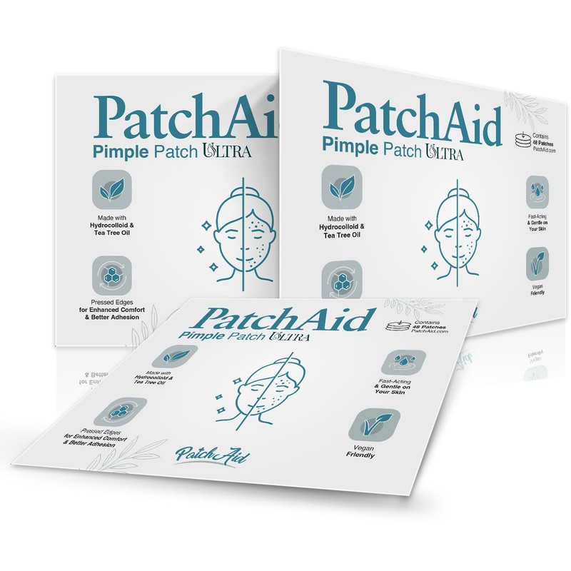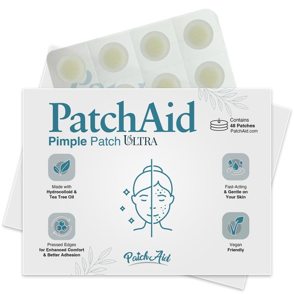Hydrocolloid Fast-Acting Pimple Spot Treatment Pressed-Edge Ultra Patch with Tea Tree Oil by PatchAid (48 Count)