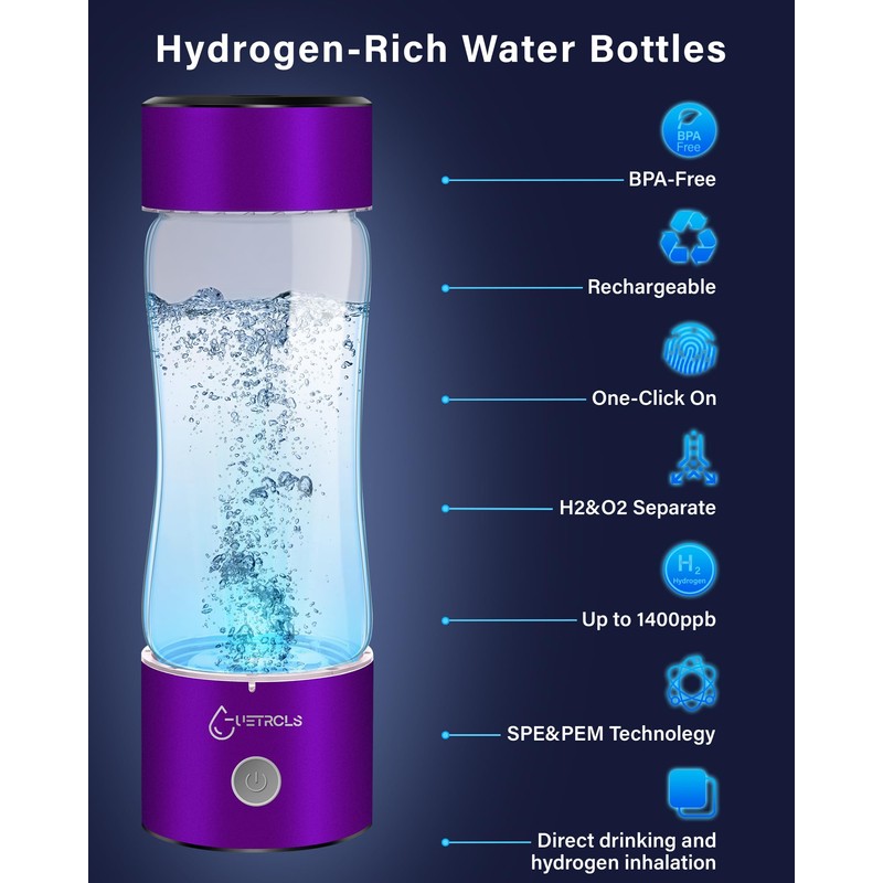 Hydrogen Water Bottle 2024, Hydrogen Water Bottle Generator with SPE PEM Technology Water Ionizer, Hydrogen Water Machine Improve Water in 3 Minutes for Home, Office, Travel, Daily Drinking(Purple)