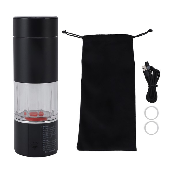 1、HIGH CONCENTRATION HYDROGEN RICH WATER: It is capable of delivering 13520PPB of highly concentrated, super saturated hydrogen rich water. Drinking hydrogen rich water is good for health. 2、SAFE, HEALTHY: The hydrogen water bottle works by electrolyzing water into H+ and OH‑ without producing harmful substances such as ozone and chlorine. This ensures that the water is clean and pure, providing users with safe and healthy drinking water. 3、MULTIFUNCTIONAL: It has independent functions such as intelligent cleaning function, constant temperature heating function, and standard high hydrogen function, which increases the convenience and flexibility of use. 4、BEAUTIFUL APPEARANCE: The smooth and delicate PC cup body is beautifully designed, presenting a sense of fashion and enhancing the user's experience. And with light effects to increase the sense of water bottle fashion and technology. 5、CONVENIENT CHARGING: The hydrogen water bottle is designed with a round head magnetic connector, making charging more convenient and labor saving. Bottom with vent for exhaust gas, and with true split chamber disintegration technology to remove the exhaust gas from the bottom.