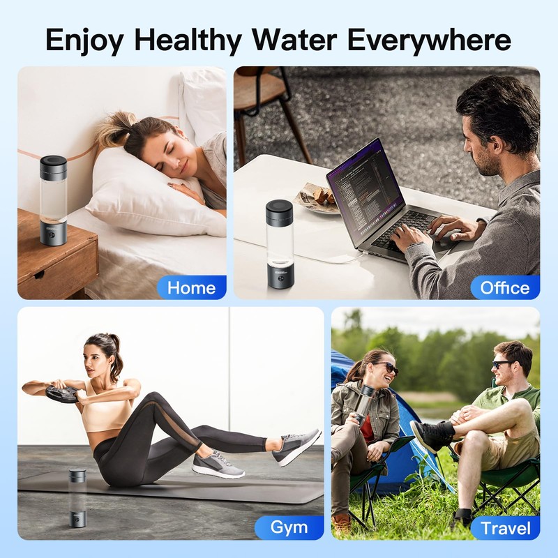 - Fast Charging & Long Battery Life: Featuring a Type-C charging port and a high-capacity battery, this hydrogen water bottle supports extended use with quick recharging. Lightweight and portable, it's the perfect hydration companion for work, workouts, travel, and outdoor activities