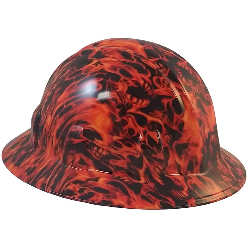 Hydrographic Full Brim Hard Hats with 6 Point Suspension - Dante's Inferno Skulls and Fire