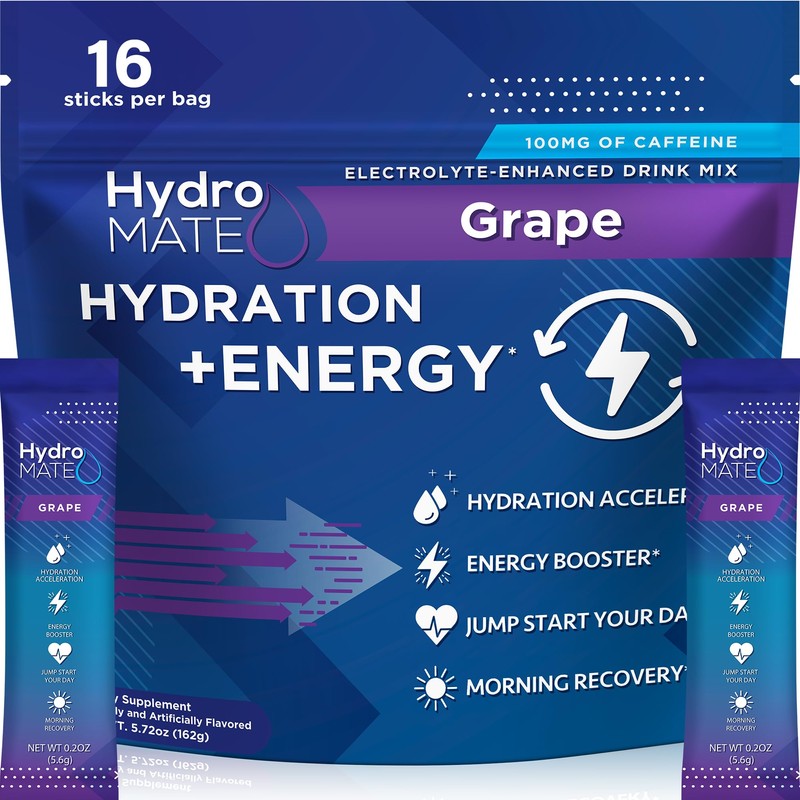 - HydroMate Grape Electrolytes Powder Packets Hydration Packs Individual Sticks