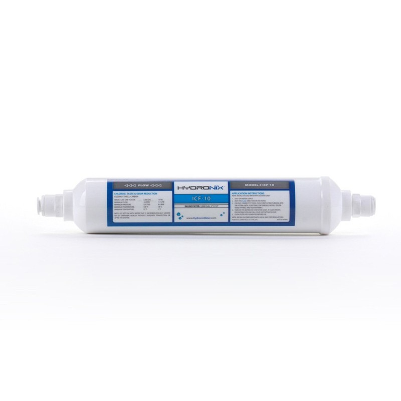 Hydronix ICF-10Q38 Inline Reverse Osmosis Post, Fridge & Ice Coconut GAC Water Filter 2000 Gal, 3/8" Quick Connect