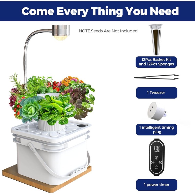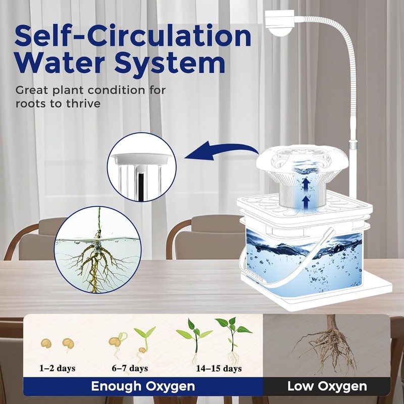 - Large capacity water tank: The hydroponic growth system can store 2.64 gallons of water,Just minutes tow week to add water and nutrients - our advanced hydroponics system does the rest!, ensuring that your plants are well watered and grow vigorously for up to 15 days. When you're not at home, you don't have to worry about plants running out of water, you can play with peace of mind.
