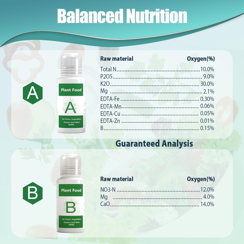 - 【Stronger and Faster】Our A&B hydroponics plant food made from premium ingredients that are 100% water soluble and pH-balanced, allowing plants to better absorb nutrients, which making plants grow stronger and faster