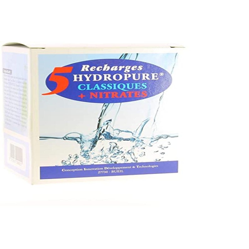 - The classic refill bags + nitrate charge Hydropure the cartridges round or oval hydropure. Box of 5 tied, they reduce the content of limescale, nitrate, chlorine, lead and some pesticides from the water.