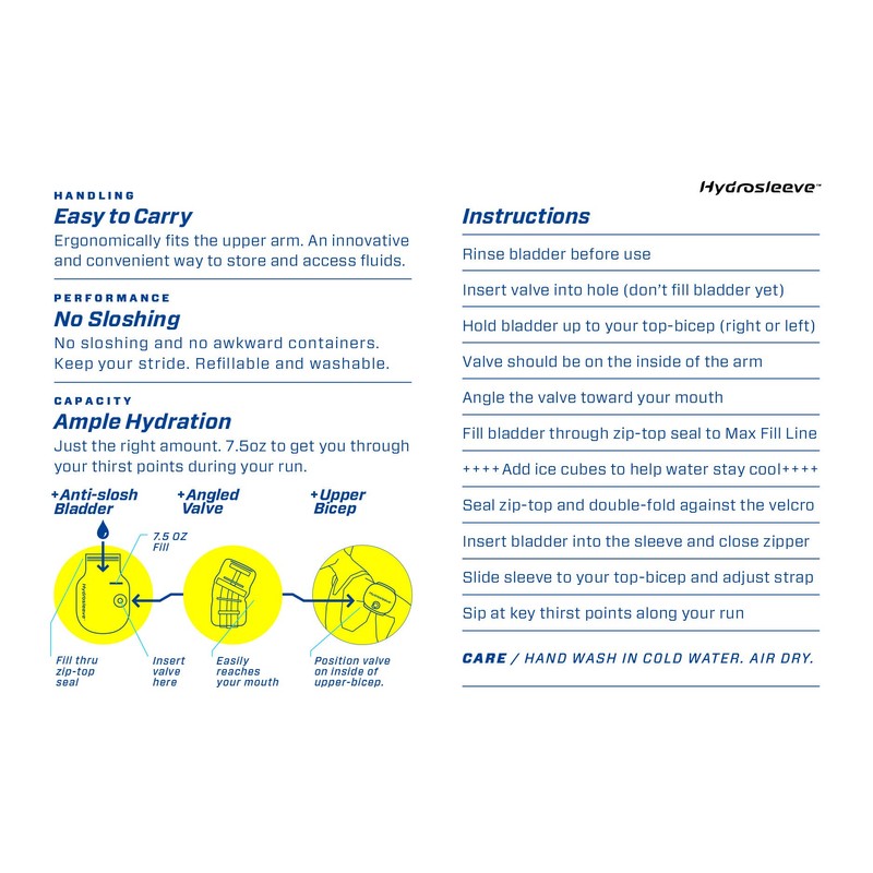 • Hydrosleeve Running Hydration Pack comes with one (1) Hydrosleeve, two (2) anti-slosh bladders and two (2) angled valves made from silicone. Great Gift Idea for a Runner, Marathon, Half Marathon, Trail Running and and sports.