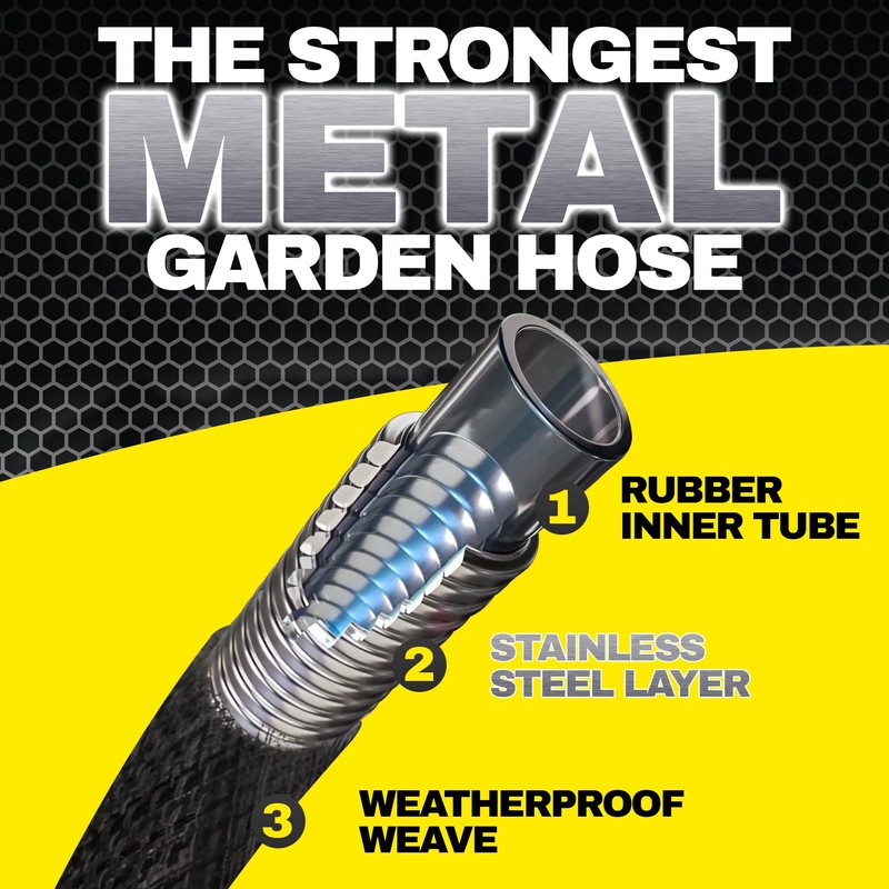- THE LAST GARDEN HOSE YOU WILL BUY: The Hydrosteel, 3-layer, heavy duty garden hose is constructed with a rubber inner tube, wrapped in a commercial-grade, 304 stainless steel serpent tube, and then encased in a polyester weave to create an ultra-durable, rust proof, leak and puncture resistant, weatherproof water hose tough enough to even withstand being placed in a fire.