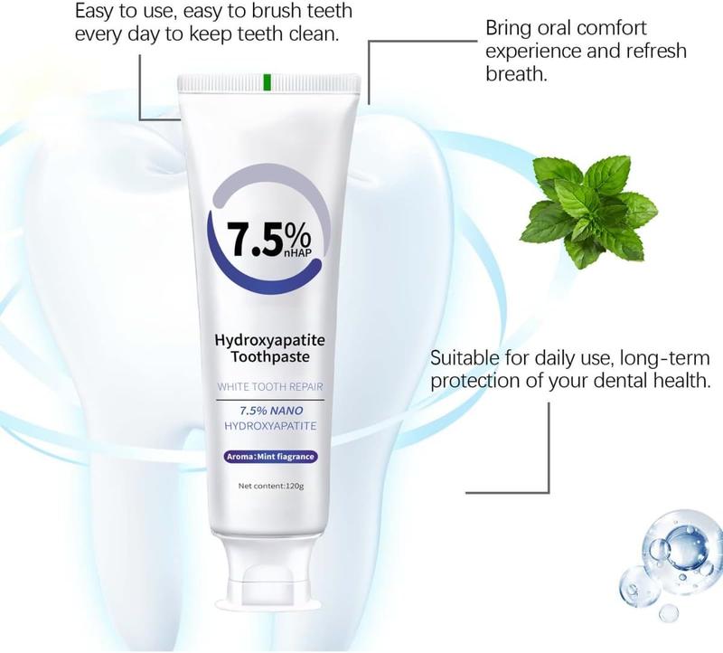 Daily Oral Care:Designed for everyday use, our hydroxyapatite toothpaste keeps your teeth strong and your mouth feeling refreshed.Incorporate it into your regular brushing routine to achieve a healthy, radiant smile that lasts.