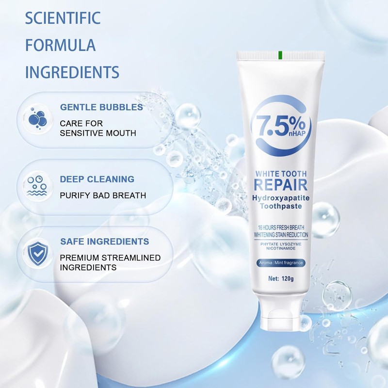 Daily Oral Care Toothpaste: This hydroxyapatite toothpaste is designed for daily use, maintaining optimal dental hygiene and fresh breath.