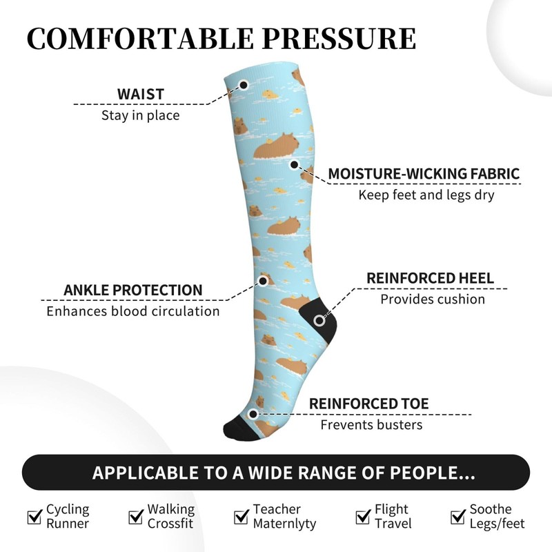 HYEECR Cartoon Capybara Orange Compression Socks For Women Men Circulation Graduated Supports Socks For Athletic Medical Travel Flight