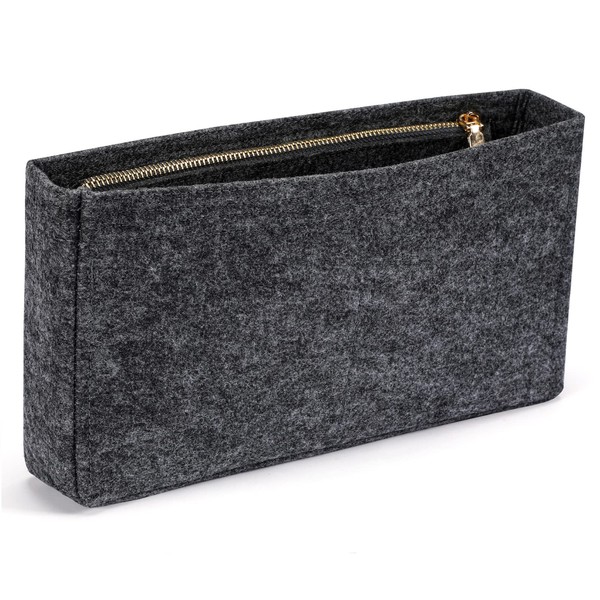HyFanStr Organizador de bolso pequeño con cremallera, organizador de bolsa de fieltro para mujer, Gris, L