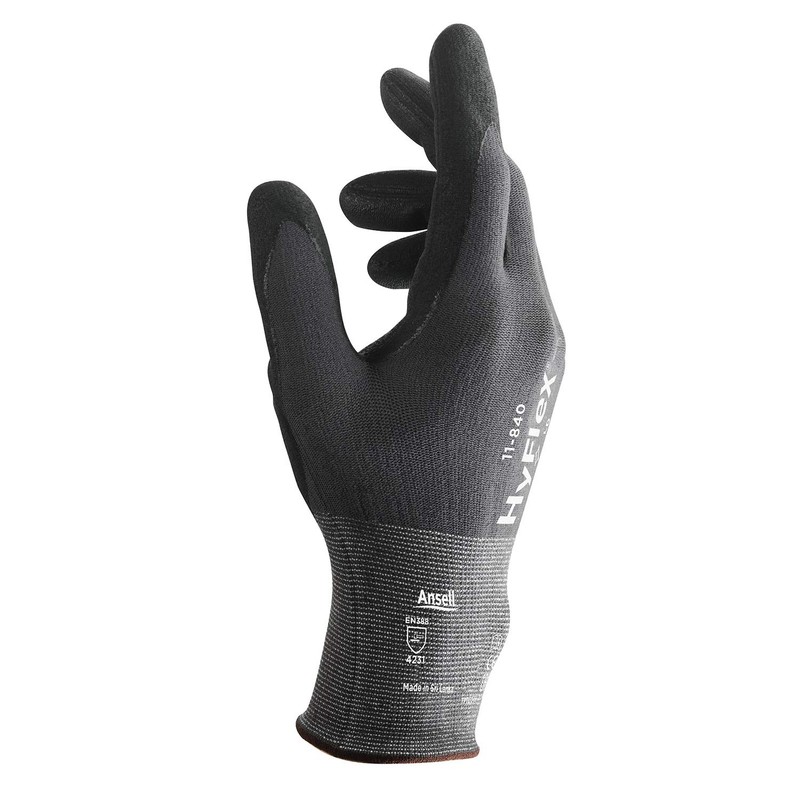 HyFlex 11-840 Guante Multipropósito resistente a la abrasión. Gran durabilidad y un ajuste superior para una manipulación de precisión en aplicaciones abrasivas. Talla Mediana. 1 par.