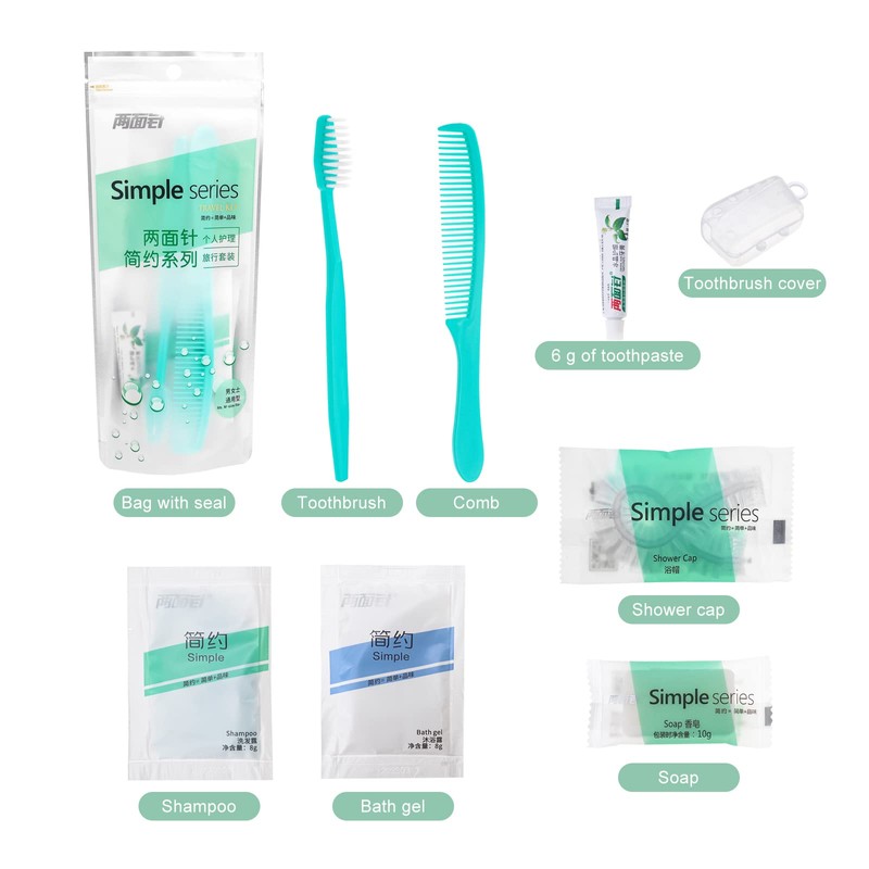 - More sets to match: our hygiene travel kit comes in a pack of 50 sets. Each travel size hygiene products bulk set consists of a disposable toothbrush, toothpaste, comb, shampoo, shower gel, shower cap and soap. personal care travel size toiletries make it even more comprehensive, convenient and comfortable to use. The personal care travel size toiletries are comprehensive, convenient, comfortable and secure.