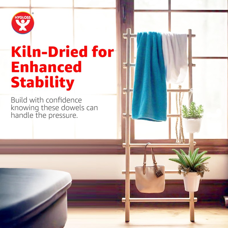- KILN-DRIED FOR STABILITY – These premium wood dowels are kiln-dried which removes more moisture from wood as opposed to just air drying. This will help these wood rods maintain their shape and straightness.
