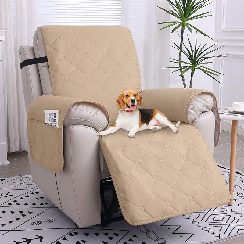 hyha 100% Waterproof Recliner Chair Covers, Non Slip Recliner Cover, Recliner Covers That Stay in Place, Reclining Slipcovers with Pocket, Furniture Protector for Pets, Dog (23.6", Camel)