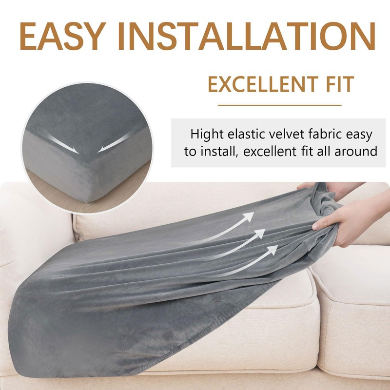 - [Stay In Place] Featuring non-slip thick elastic bottom, our couch seat cushion covers can stay tight with no snag, no wrinkling, shifting or slipping on both leather and cloth sofa. Check the installation guide carefully, it can be finished within 9 minutes by one person. Sectional couch cushion covers are simple to put on and remove.