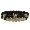 HYHONEY 2PCS/Set Micro Pave Zircon 8mm Charm Beads Bracelet for Men Women His and Hers Couple Bracelet Natural Black Matte Onyx Stone Beads Elastic Adjustable (A-gold)