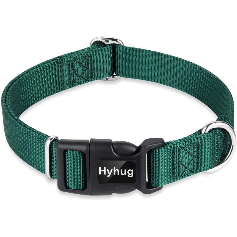 Hyhug Design Classic Basic Nylon Dog Collar, Can Install Dog Tag (Small, Dark Green)